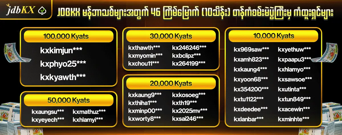 * ပရိုမိုးရှင်းအား JDBKX မှ ကြိုတင်အသိပေးခြင်းမရှိပဲ အချိန်မရွေး ပြောင်းလဲပြင်ဆင် ပိတ်သိမ်းခွင့်ရှိသည်။